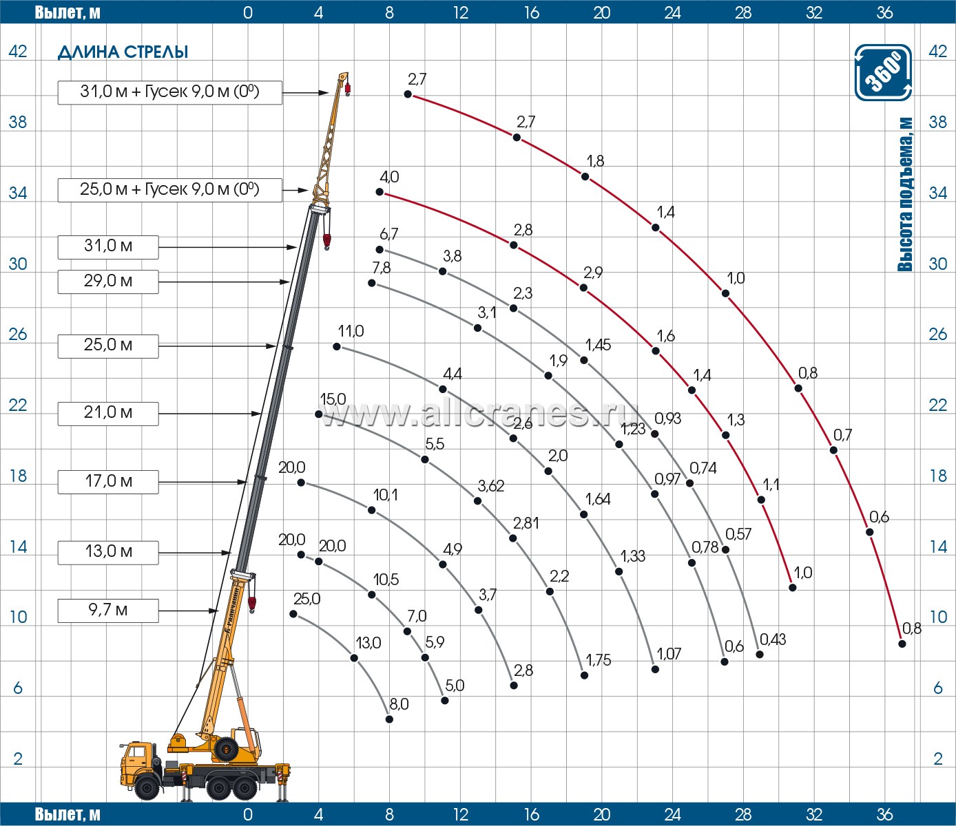 | Длина стрелы, м | 9,7 - 31,0 |